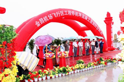 2010年8月20日上午10時,金昌機場飛行區停機坪混凝土道面工程順利封倉。甘肅省交通運輸廳、金昌市政府、甘肅機場建設投資管理公司、甘肅機場項目建設指揮部及施工單位等有關單位領導現場見證了道面工程順利封倉的時刻。