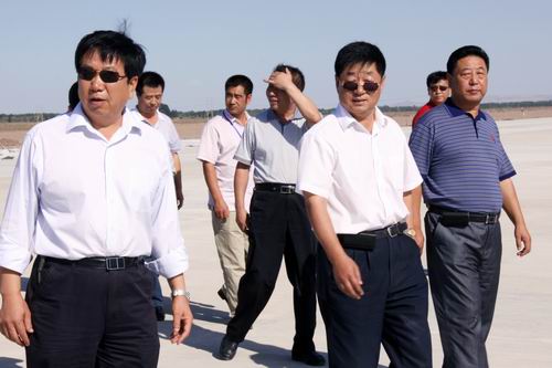 8月21日,由喬新山局長率領的民航西北管理局工作檢查組一行蒞臨金昌機場飛行區施工現場檢查指導工作。在飛行區停機坪建設工地,在了解到公司金昌機場項目部僅用了二十五個晝夜完成了總面積2.65萬平方米停機坪道面工程的情況后,對大家的辛勤勞動給予了充分肯定,并鼓勵廣大建設者繼續鼓足干勁、克服困難,發揚求真務實、艱苦奮斗的作風,確保工程按期完工。