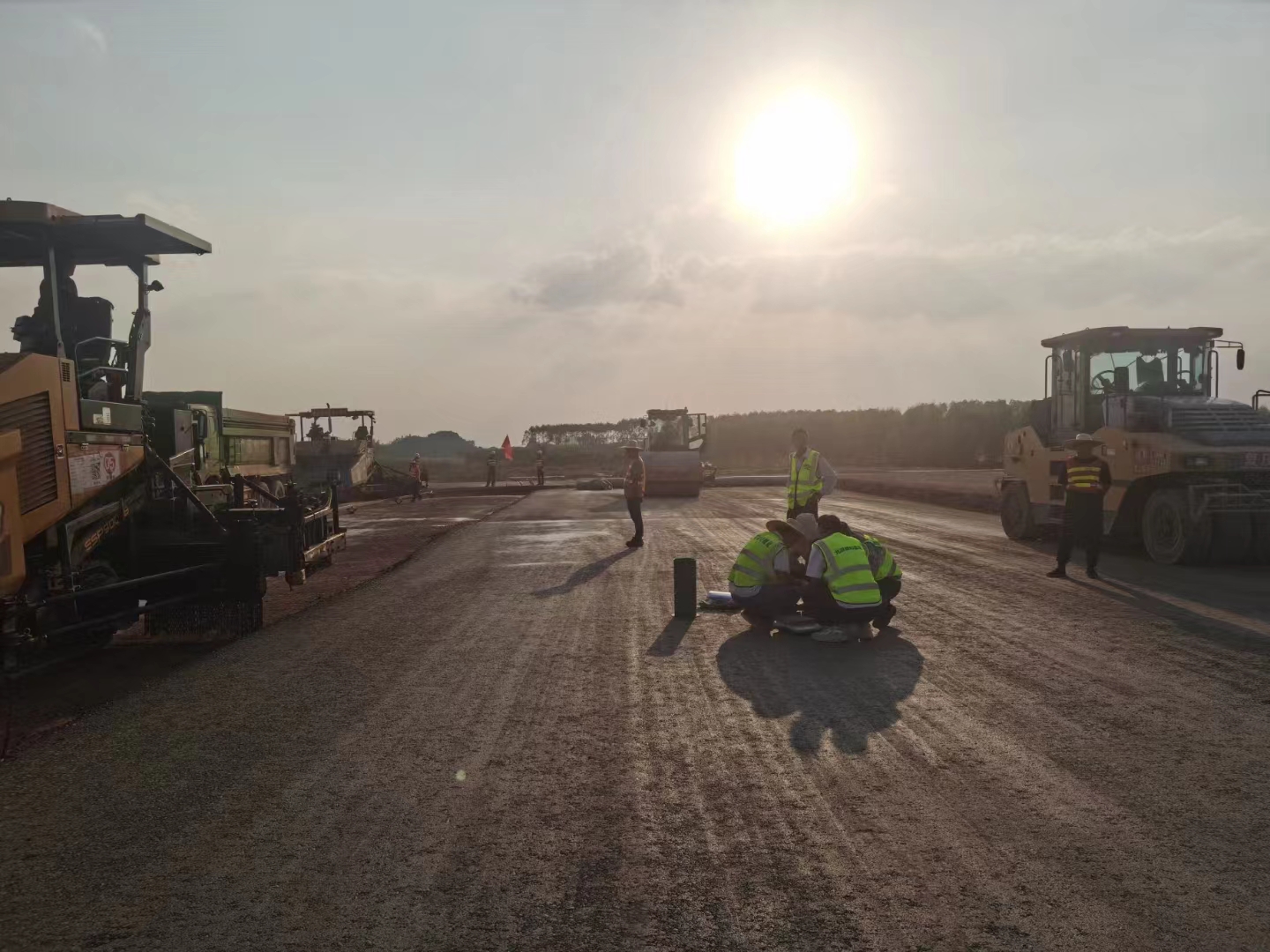 11月28日,隨著第一車水泥穩定砂礫混合料倒入攤鋪機,攤鋪機緩緩啟動,標志著由我司承建的南寧吳圩機場改擴建工程飛行區場道工程(四標段)水穩基層試驗段施工正式開始。