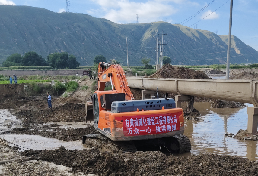 災情就是命令,我公司第一時間啟動應急響應機制,領導班子迅速部署搶險工作。駐榆中縣黃河流域宛川河金崖污水處理廠項目部接到指令后,立即集結人員,配備挖掘機、抽水泵等專業設備緊急趕赴夏官營,全力開展道路搶通、河道疏浚及淤泥清理作業。