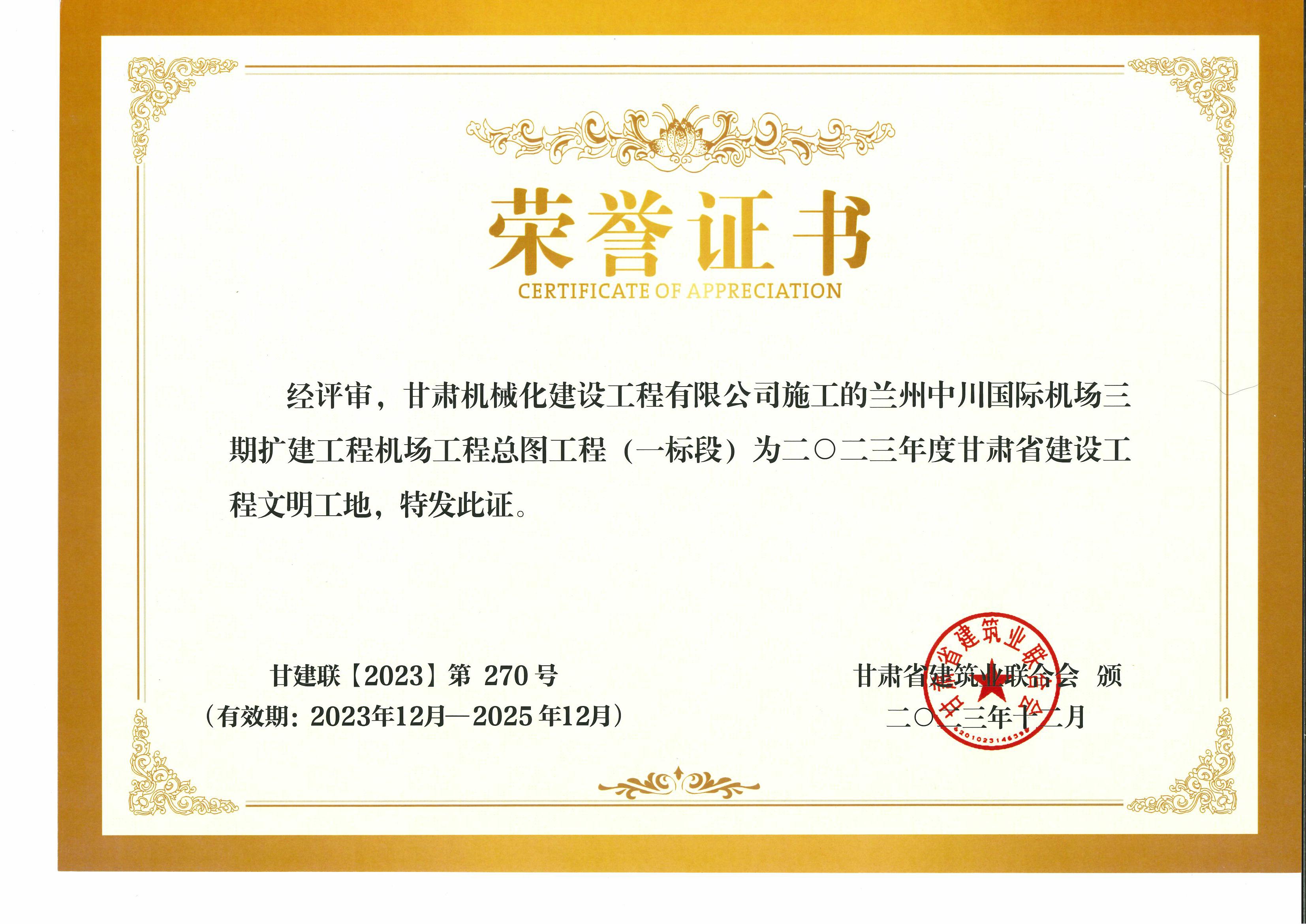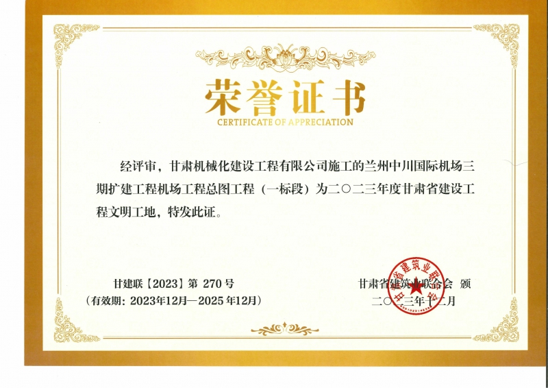 2023年度甘肅省建設工程文明工地 蘭州中川國際機場二期擴建工程機場工程總圖工程 (一標段)