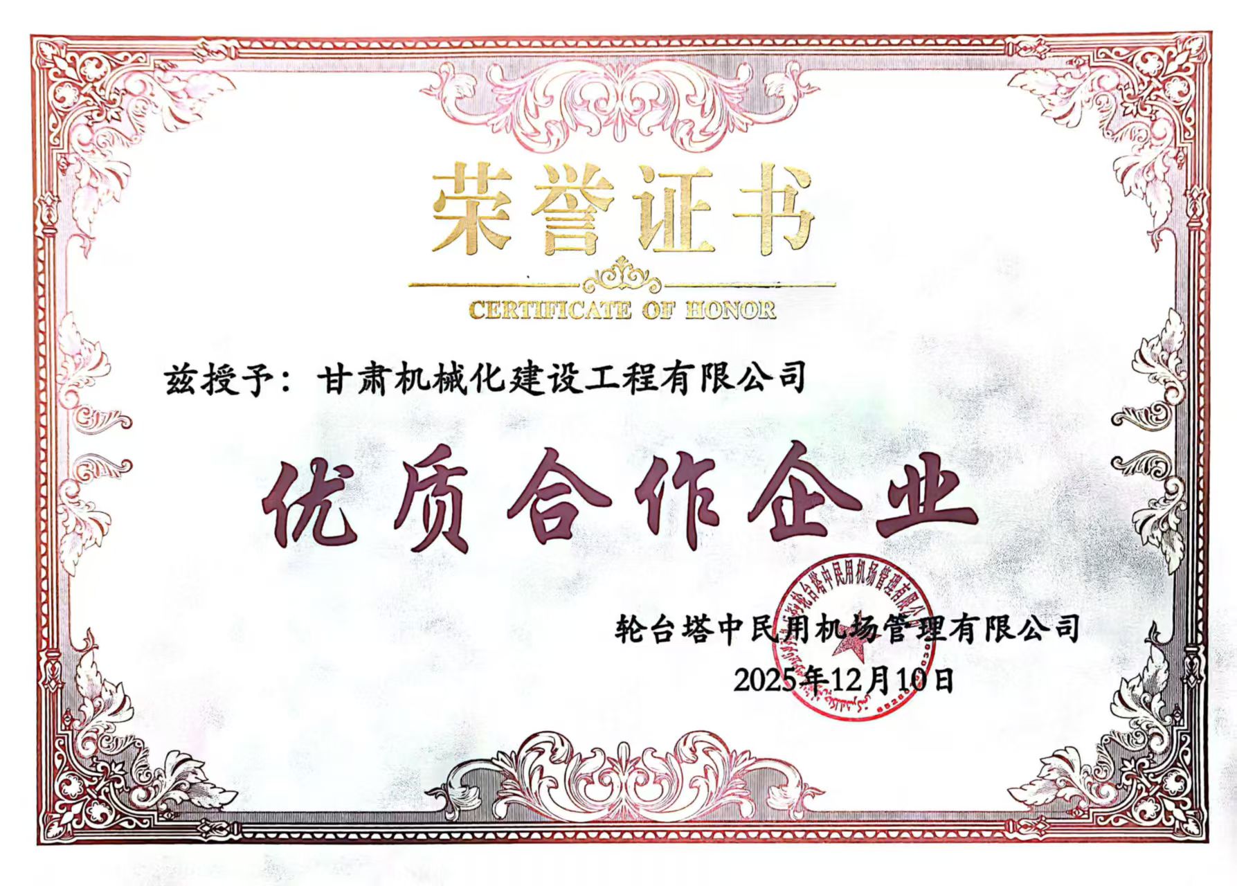 新疆輪臺機場項目優秀合作企業